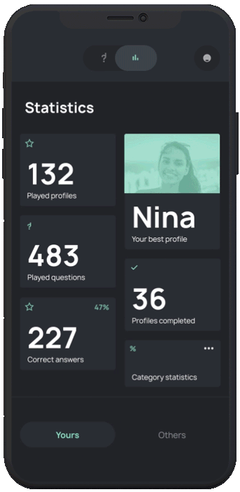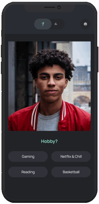 Distinct App combines social media and gaming. Your goal is to evaluate other users by their profile picture and answer questions from six categories. There are no other tools available to you: Just a picture, your intuition and knowledge of human nature. Good luck!